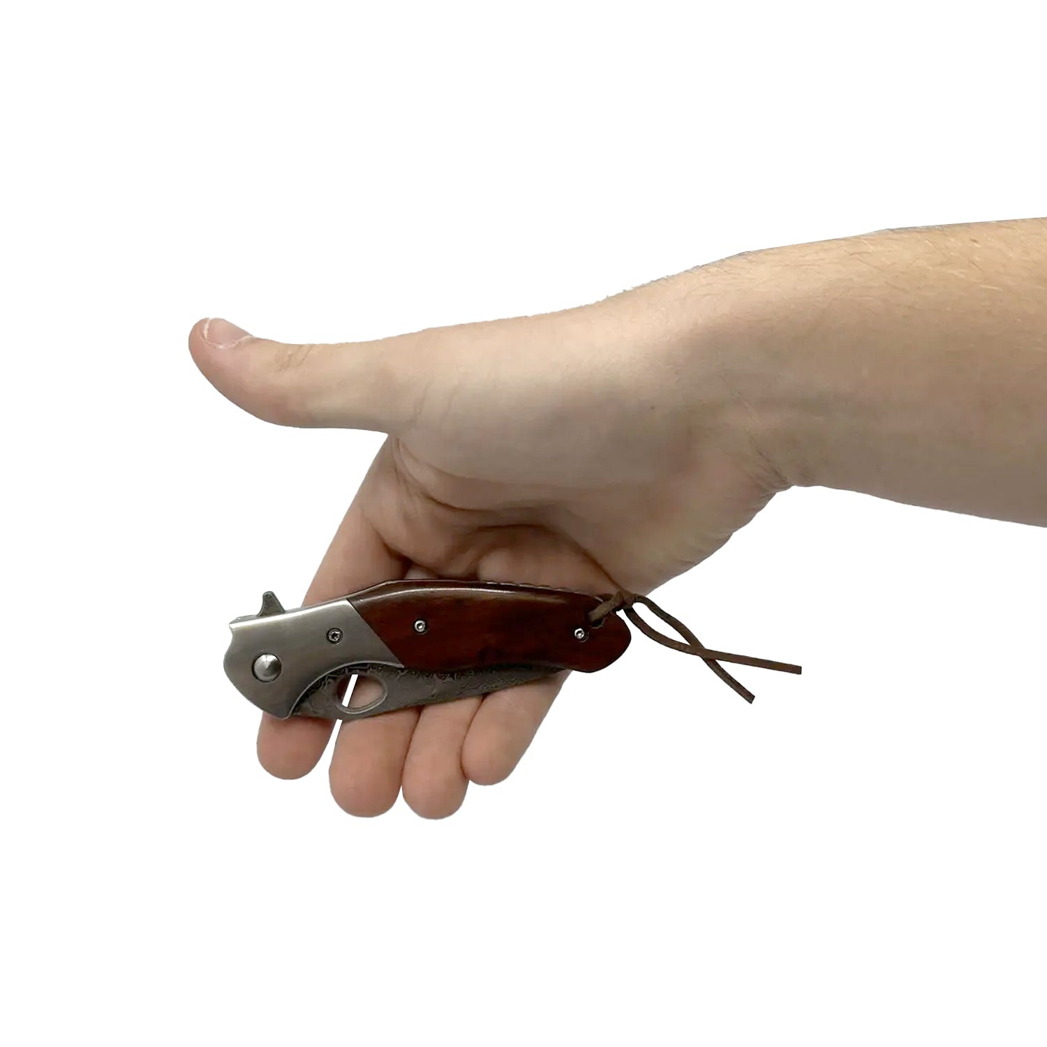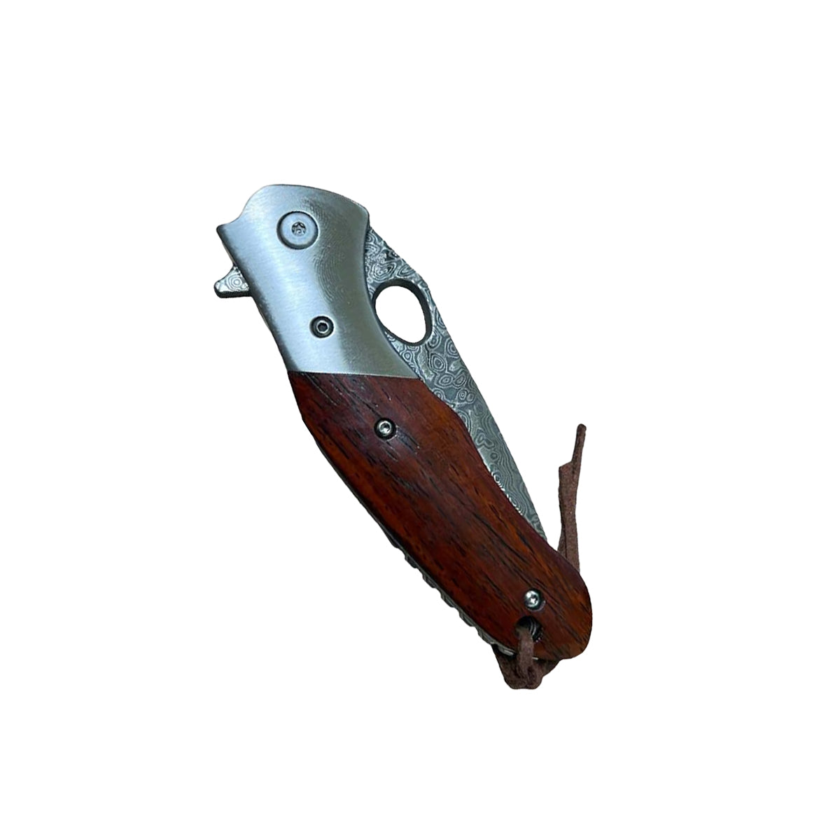 3.5" Damascus Drop Point Blade Knife w/ Wood Handle
