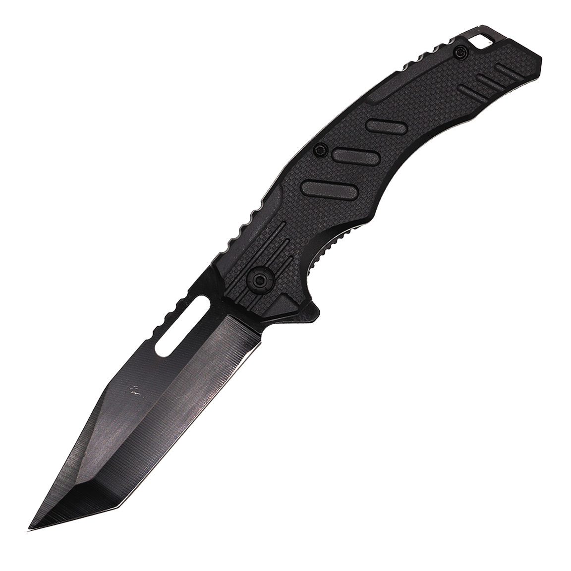 The 3.25" stainless steel tanto blade is designed for maximum piercing power and durability, making it ideal for tactical, self-defense, or everyday cutting tasks. When closed, the knife measures 4.75", making it compact enough for discreet carry. The black ABS handle offers a secure and comfortable grip, ensuring full control during use.