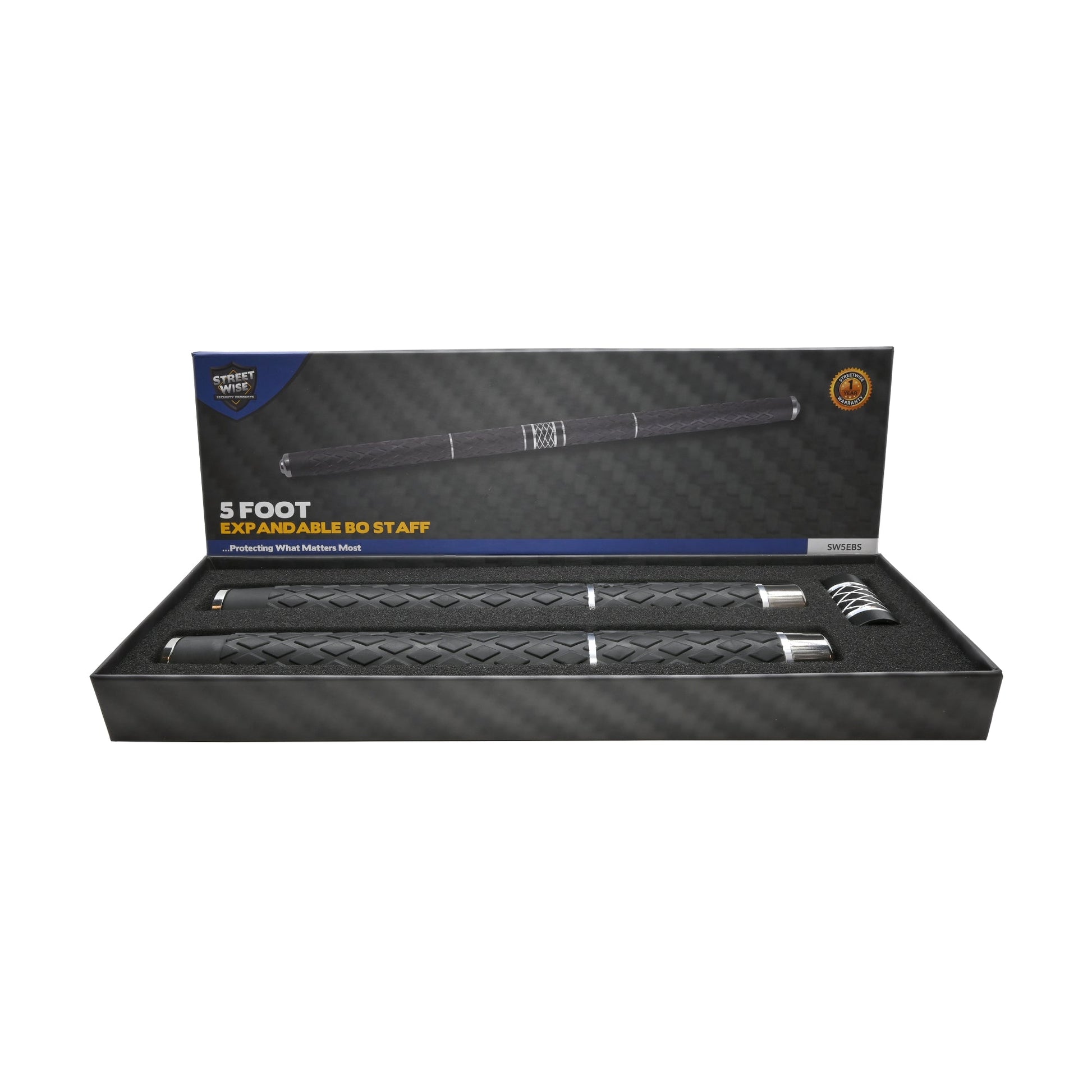 Streetwise Security Products is proud to introduce the “bo on the go”! With a quick twist, the Streetwise Expandable 5' Bo Staff expands from 22 inches to 5 feet long (59 inches)! Whether you are using it for self-defense or martial arts training this unique Bo Staff is certain to get the job done! For versatility, we have also included two end caps which allow you to create two 31 inch batons by simply detaching the batons from the center connector and adding the end caps. Have a look at the first video below where a customer compares our new unit to one he manufactures and retails for $129.00. You will see our Bo Staff cut through a watermelon like a warm knife through butter!